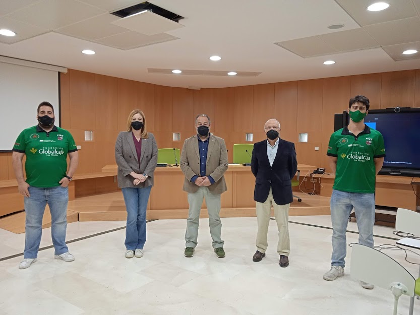 El rector de la Universidad de Castilla-La Mancha (UCLM), Julián Garde, ha acompañado hoy a los equipos patrocinados por la institución académica, el Fundación Globalcaja La Roda y el Albacete Basket, en su previa al partido que disputarán el próximo domingo, 11 de abril, a las 19.00 horas en La Roda. Durante la comparecencia, el rector ha indicado que la Universidad regional trabajará en la puesta en marcha de un conjunto de actuaciones para el fomento de la conciliación de la vida académica y deportiva de los estudiantes.