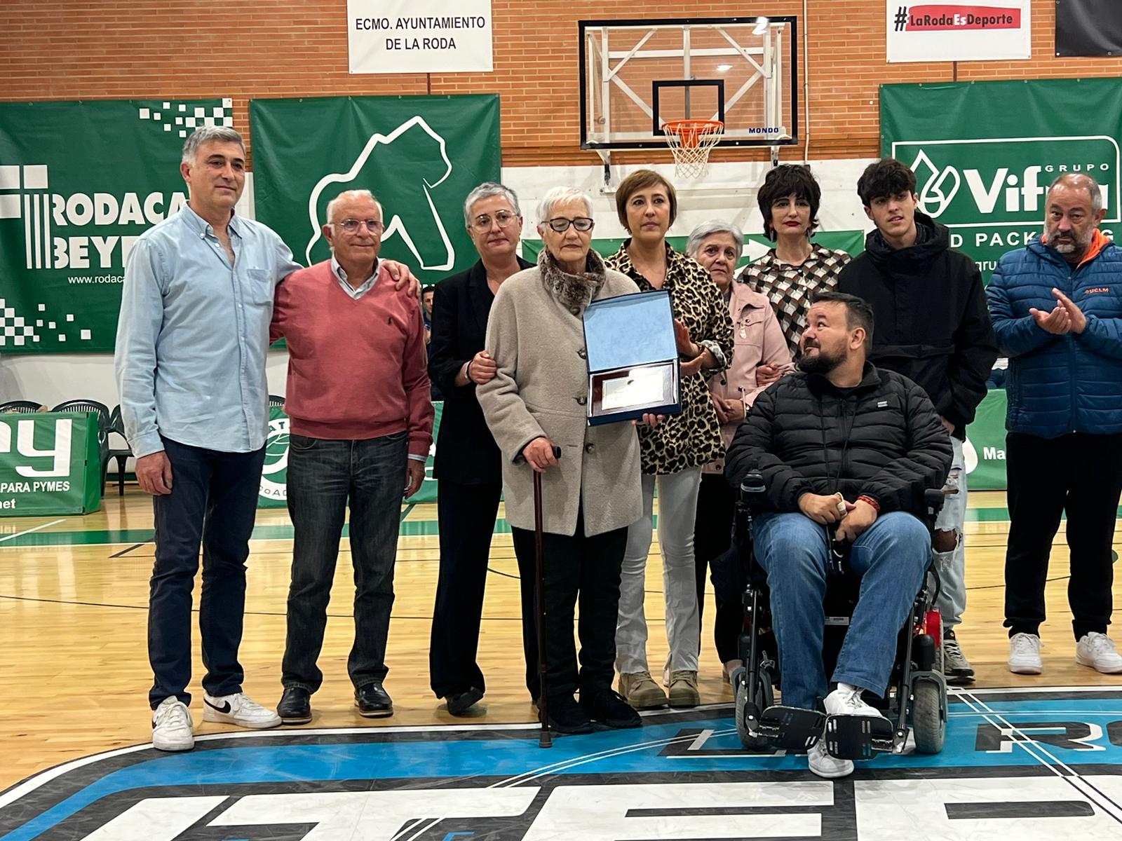 Constantino Berruga, Presidente del Club Baloncesto La Roda, hizo entrega de una placa a Luisa Ibáñez y familia como reconocimiento a la inmensa labor que hizo por el baloncesto rodense Diego Berruga Tébar, recientemente fallecido, padre de Diego Berruga Ibáñez, director de nuestra escuela de baloncesto.