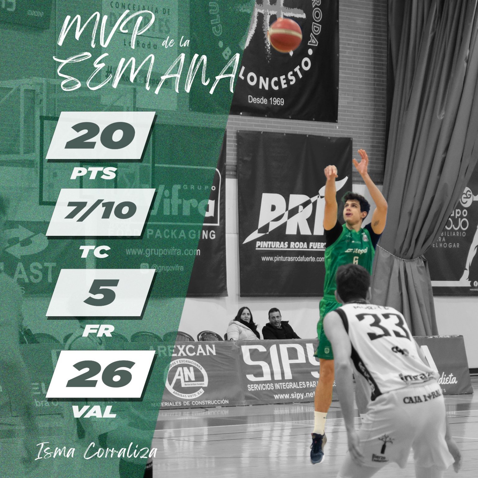 Importantísima fue la victoria que consiguió el Fundación Globalcaja La Roda este domingo ante el Juaristi ISB en un partido muy sufrido e igualado desde el inicio hasta el fin. El hombre del partido fue el incansable Corraliza -20 puntos y 22 créditos de valoración-, que apareció en los momentos que más lo necesitaba la escuadra albaceteña.