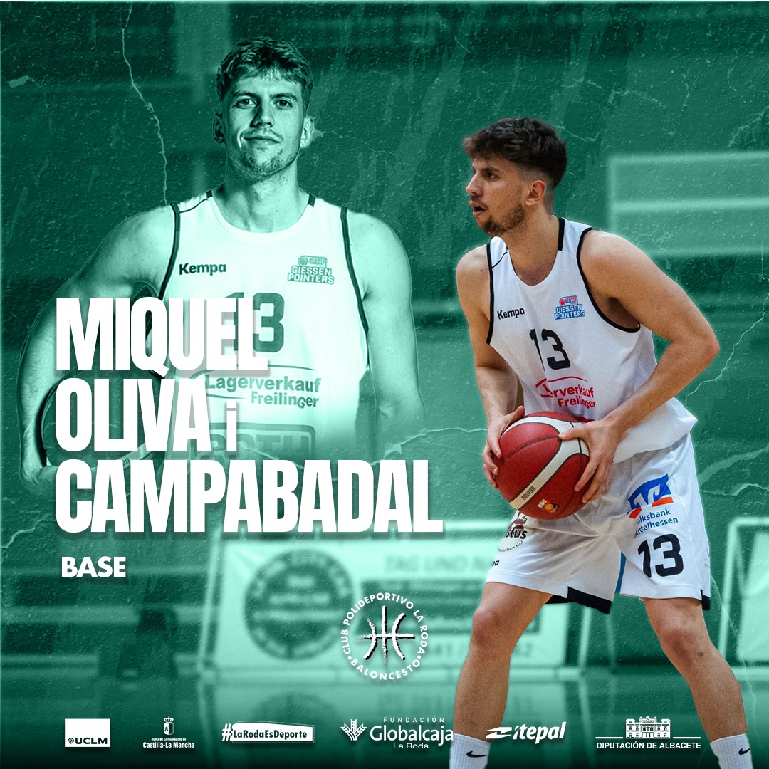 Miquel Oliva Campabadal, de 24 años, 183 centímetros, formado en el Baxi Manresa, tiene experiencia en 3ª FEB -tres años en el CB Vic de 2019 a 2022-, y en las ligas de Italia y Alemania. En este país, en el Gieseen en la Regionalliga en 2023-2024,fue uno de los jugadores más destacados con promedios de 8,8 puntos, 3,9 rebotes y 4,3 asistencias en 25 minutos por partido.