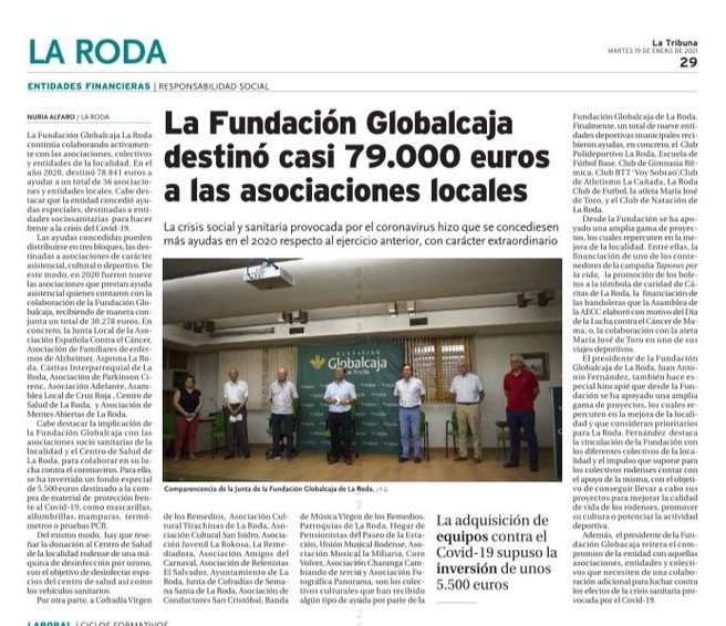 Fundación Globalcaja La Roda destina 79.000 euros a asociaciones locales. Con este titular poco más se puede añadir. ¡Orgullosos de llevar su nombre!